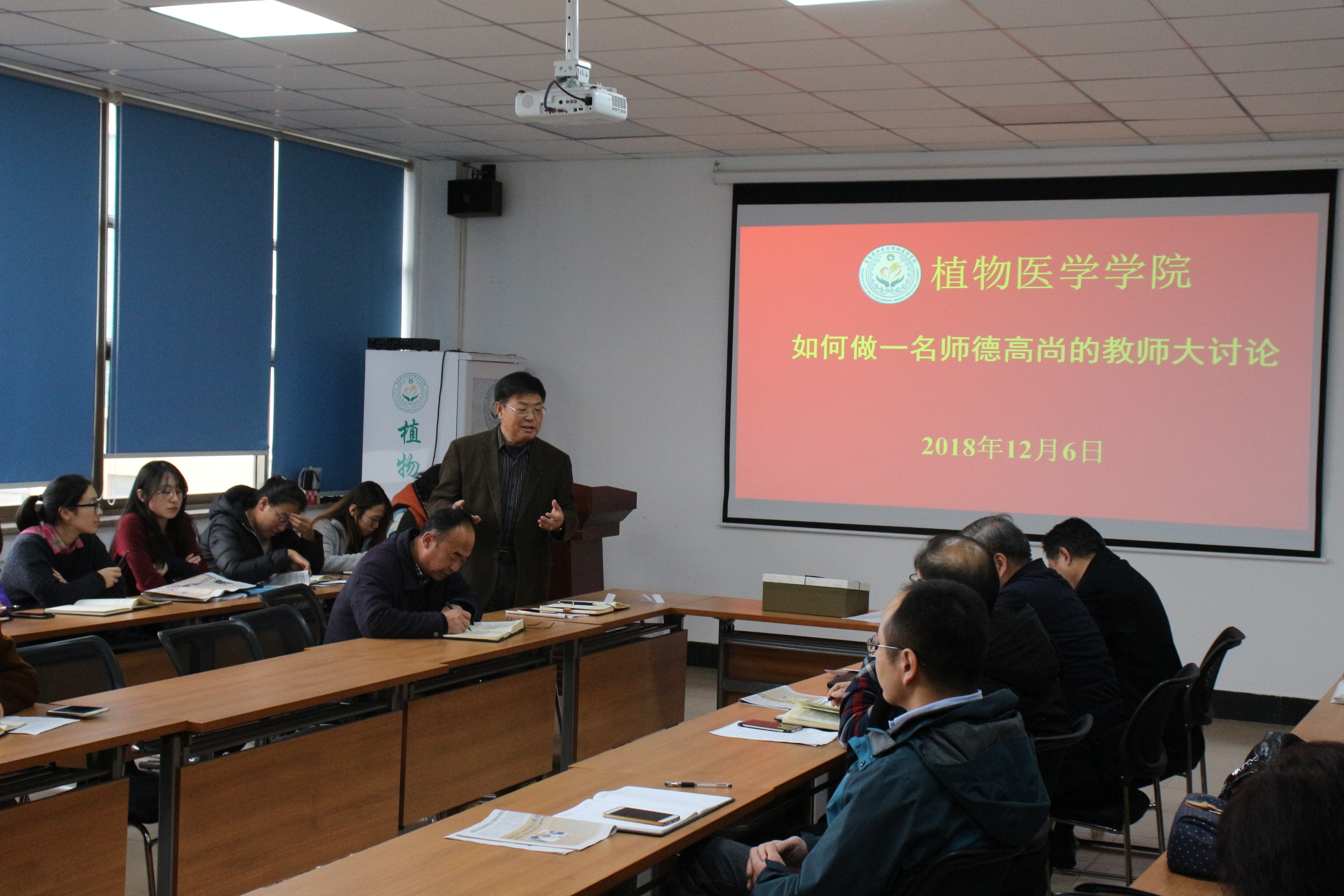 12月6日,beat365官网在生物楼会议室召开植物医学院教职工政治理论学习会议,会议以“如何做一名师德高尚的教师”为主题开展大讨论,学院全体教职工参加,会议由学院党总支书记袁忠林主持。