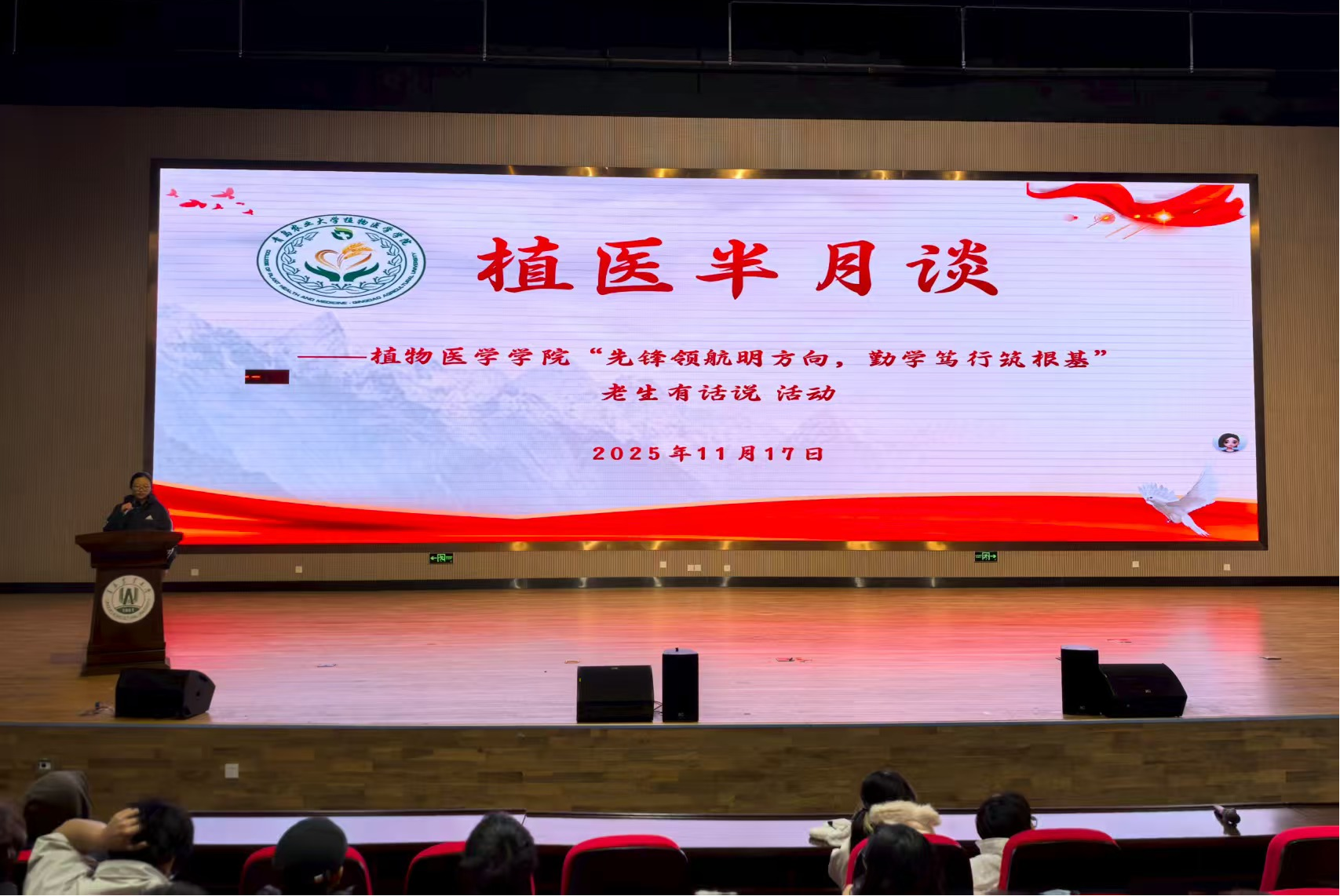 为充分发挥优秀学子的先锋模范作用,营造积极向上的学习氛围,助力同学们明确学习方向、激发学习动力,11月17日,beat365官网beat365官网于平度校区大学生创业中心报告厅举行“植医半月谈”——“先锋领航明方向,勤学笃行筑根基”老生有话说活动。植保D2201班李砚卓、植保2301班潘源、植保2303班许涵茗主讲,2025级全体学生参加,活动由学术部联络员刘璐主持。